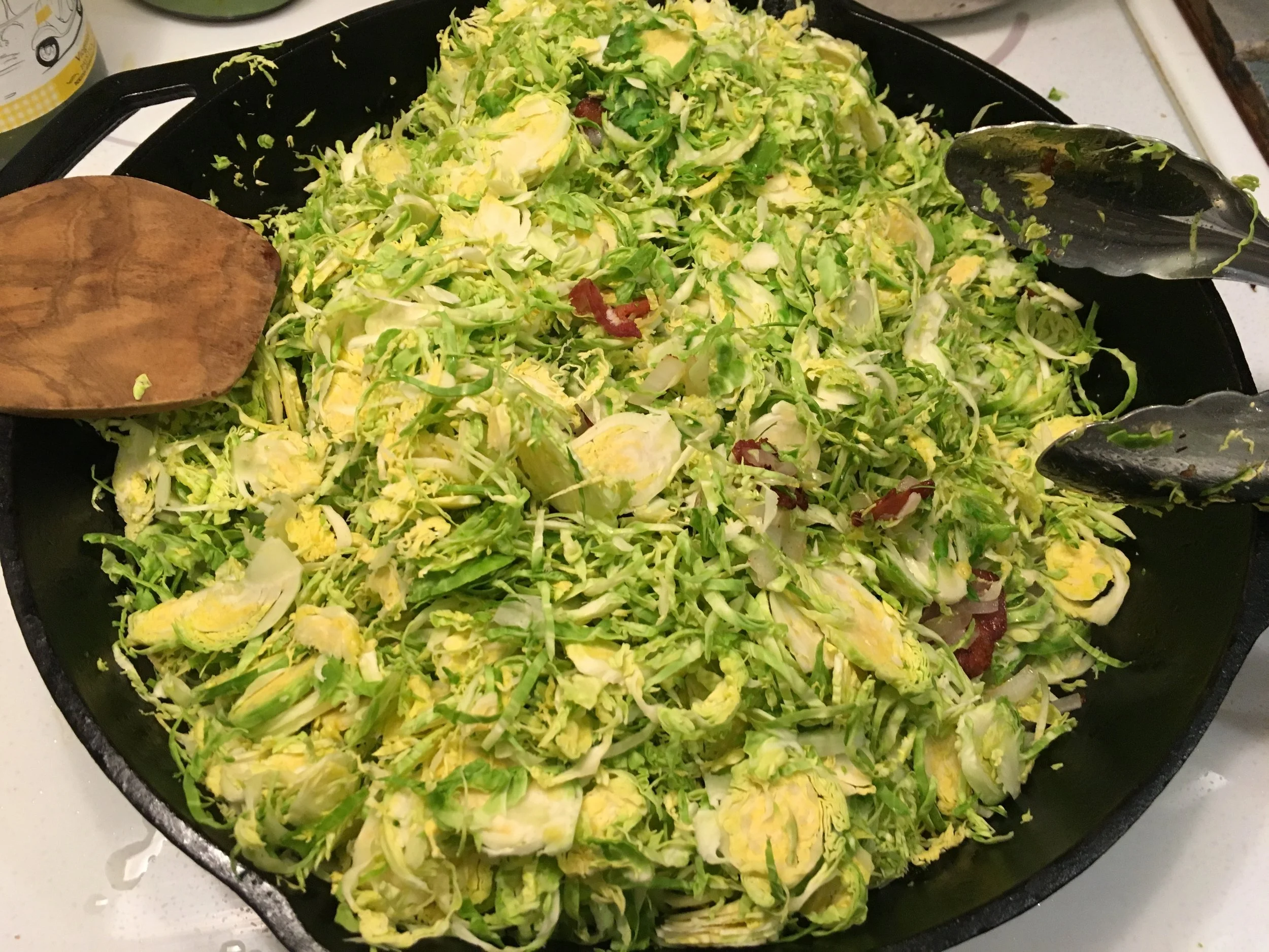 Add Brussels sprouts: Stir in the thinly sliced Brussels sprouts, fresh or dried sage, salt, pepper, and any seasoning mix you prefer. Stir well to combine.