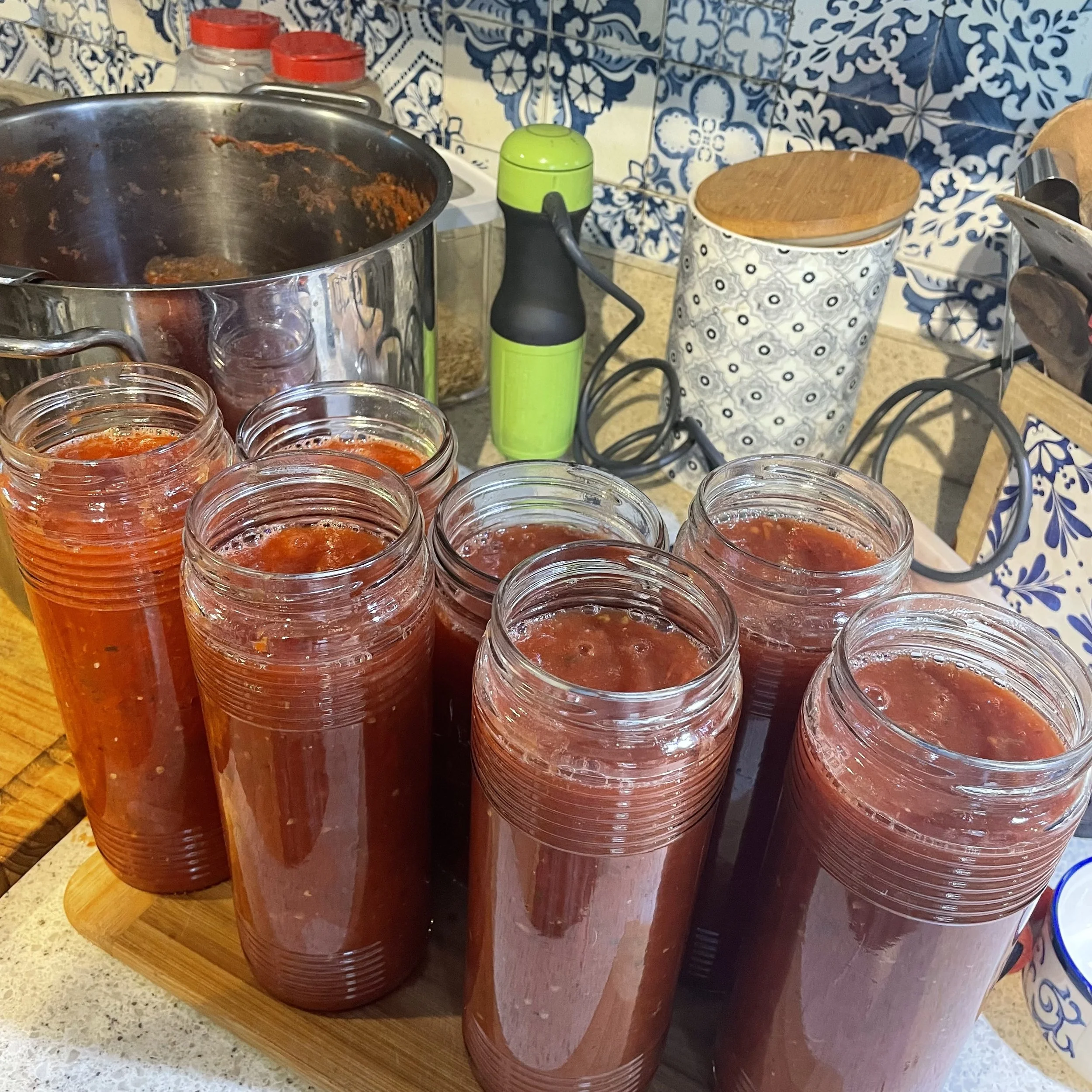 Cette méthode au bain-marie est sécuritaire parce que nous ajoutons du jus de citron en bouteille (pour l’acidité) et nous suivons les temps de cuisson recommandés. Tu peux ensuite savourer ta sauce sur des pâtes, dans des ragoûts ou comme base de pizza.